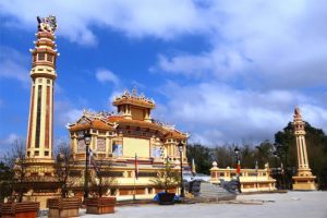Công trình được thiết kế theo phong cách kiến trúc truyền thống Huế với các họa tiết rồng phượng tinh xảo, tạo nên một vẻ đẹp trang nghiêm nhưng cũng rất hài hòa với cảnh quan thiên nhiên xung quanh.