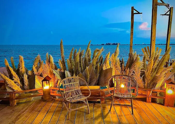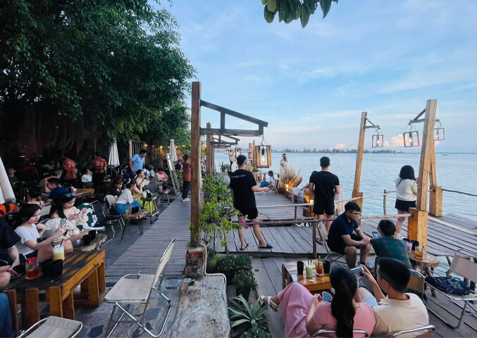 Quán sở hữu vị trí đắc địa với tầm nhìn hướng ra đầm phá Tam Giang rộng lớn. Tại đây, bạn có thể vừa thưởng thức cà phê, vừa ngắm nhìn cảnh sắc thiên nhiên thơ mộng, đặc biệt là vào thời điểm hoàng hôn khi ánh mặt trời nhuộm vàng cả mặt nước phá.